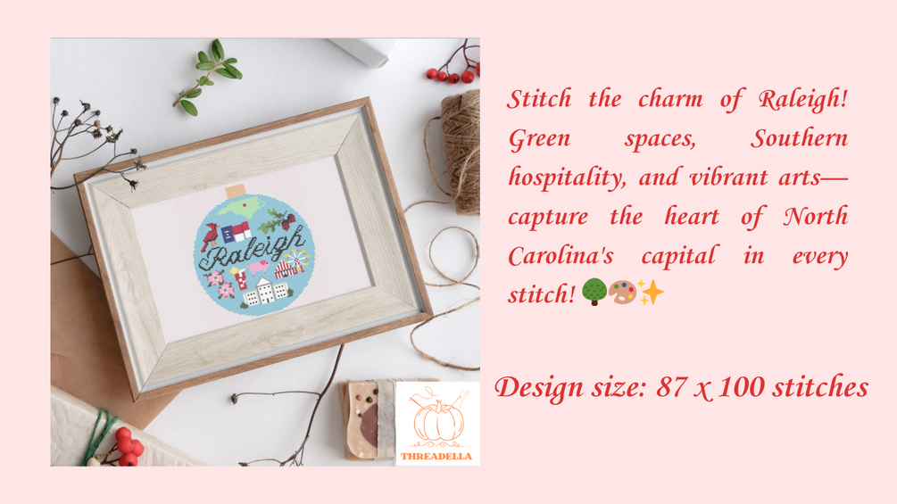 Don't miss out on this stitched adventure! Add a touch of Raleigh charm and color to your cross-stitch projects. 🌳🏙️