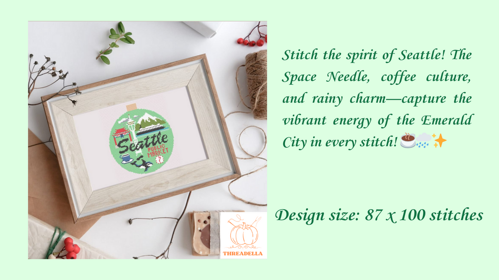 Don't miss out on this stitched adventure! Add a touch of Seattle charm and color to your cross-stitch projects. πŸŒ²β˜•